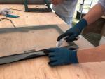 綺麗に張れたら余分なネットをカッターで切り落とします。